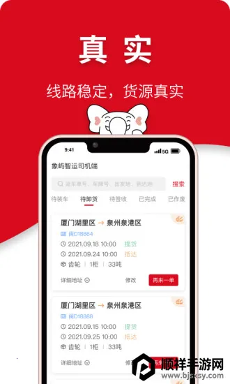 象屿智运是一款专注网络货运的物流运输APP,由厦门象屿智运供应链有限公司研发。它拥有海量货源,资源信息实时更新,能帮司机快速找货拉货,提高行车使用率,降低空返率。其功能丰富,提供运输路线规划、行车轨迹跟踪、过程异常上报等服务,还有24小时客服支持,保障货物运输。业务价格透明公开,杜绝猫腻,且经过严格审核,保障交易安全真实。无论是找货源还是提效率,象屿智运都能满足需求,值得拥有。
