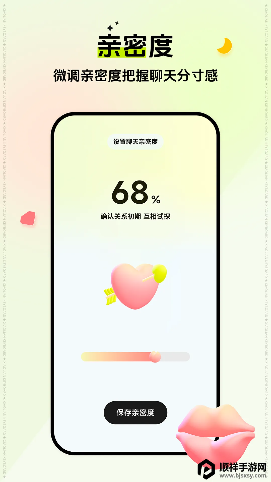 它的功能超实用。智能预测和快捷回复能提高聊天效率,节省输入时间。可个性化设置键盘,打造专属体验。不喜欢打字也不怕,有语音输入方式。设置也不难,打开小恋键盘官方版,进入首页点击小恋键盘,再开启权限就行。开启悬浮球后,还能根据设置选择聊天键盘。而且它还有搜索记忆功能,常用内容靠前;能在聊天界面直接算简单数学题,输出完整公式;还能拆分段落选小段用。不管是日常聊天还是恋爱交流,小恋键盘都能满足你,快去试试吧!