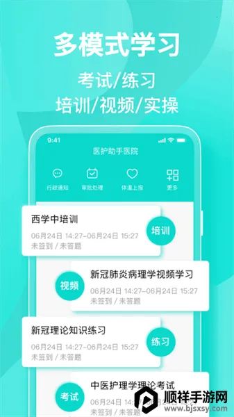医护助手是一款专为医护人员打造的实用软件。它能解决医护人员学习培训和工作管理的需求。软件内置大量专业医学培训课程,由专业团队研发,质量高,还有完善教学方案,涵盖三基培训、岗前培训等,助您熟悉护理流程。工作质量检查功能可实时上报工作内容,省心又方便。它有多种学习模式,如考试练习培训等,海量数据展示丰富学习数据,还能在线提交申请审批事务,让流程更高效。使用时通过手机号验证登录,可添加个人信息。能汇总错题方便巩固练习,随时查询学分积分。可利用质量检查表检查工作并上报信息,接收医院重要行政通知。总之,医护助手能提升医护人员的专业能力,简化工作流程,让学习和工作更轻松高效,是医护人员的得力帮手,快来下载吧。
