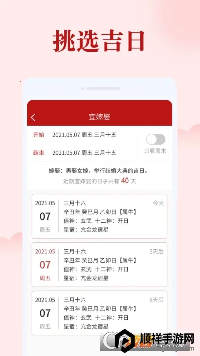想拥有一款超实用的日历软件吗?那就来看看吧!咱们这款“万事如意日历”功能超强大。它能在线提供多种日历功能,每天及时更新天气情况,出行前瞅一眼,心里就有数啦。操作特别简单轻松,几分钟就能上手。在这里,你可以把重要日子标记出来,生活更有条理。还能选择喜欢的功能、修改设置呢。它能带来各种不同体验,比如提供购物服务。集成的各种功能,能帮你规划生活,让生活更有规律。能根据你的信息量身定制日历,创建属于自己风格的日历。用了它,真的能省心不少,每天出行都更安心。软件使用方便,用户体验后还能打分。这么好用的日历,赶紧下载试试吧,相信你用了也会像我一样印象深刻!