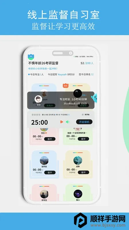 2. 丰富自习室:不同类型的自习室,可满足不同用户相互监督需求。