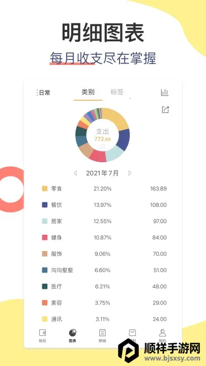 2. 具备智能分析功能,通过直观图标展示每月收支情况,跟踪消费趋势,提供数据助你合理规划财务。