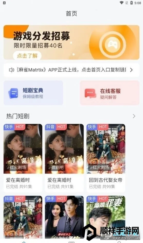 如果你想知道麻雀matrix官方邀请码多少,这里有答案!麻雀Matrix是一款超棒的短剧推广平台。它功能强大,能汇聚海量短剧素材,满足不同创作需求。智能匹配系统实时更新最热剧集,激发创作灵感。基于精准用户画像分析,提供定制化推荐,让你的作品更符合观众口味。还有广泛的分发渠道,能让你的短剧触达全国。平台提供多种题材风格的短剧素材,还配备专业剪辑教程,助你提升技能。使用它,你可以轻松制作和分享爆款短剧。注册抖音或快手账号,开通版权授权,下载视频素材,剪辑后挂载发布,就能开启短剧推广之旅啦。快来加入,用它实现你的短剧创作梦想,体验其中的乐趣吧!