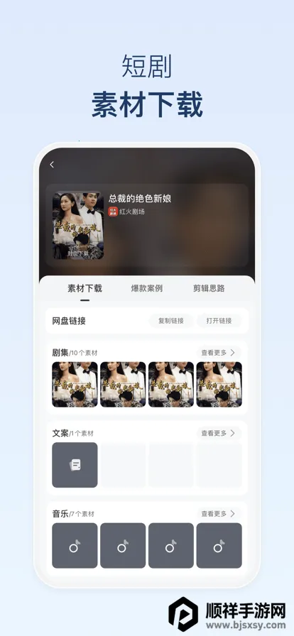 3. 丰富素材:多种题材与风格的短剧素材一应俱全,满足不同创作需求。