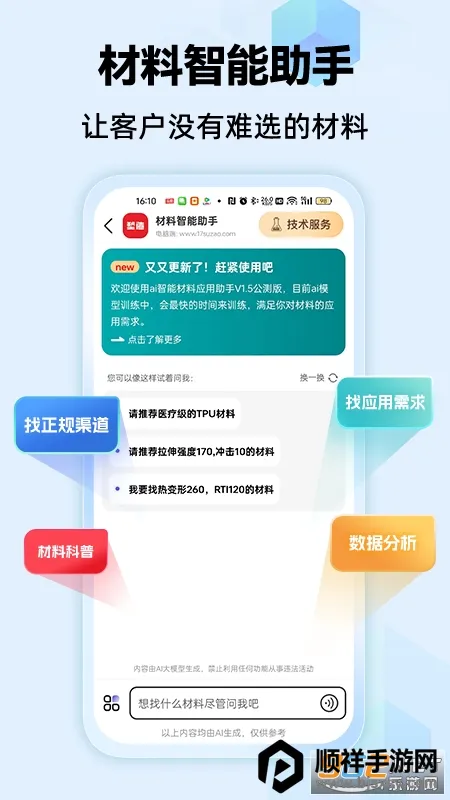 它功能强大,精准搜索能力强,输入性能信息就能迅速匹配筛选材料。同一页面展示不同产品牌号与性能参数,便于对比。还有本地缓存功能,无网络也能查阅资料。支持组合搜索,能通过社交平台分享资料。内置采购商城,汇聚全球多家知名化工厂物性数据,提供针对性性能搜索选项和独特计算功能,能让你及时了解行业进展。有了它,在材料查询、采购及研发等方面都能轻松不少,赶紧下载体验吧。