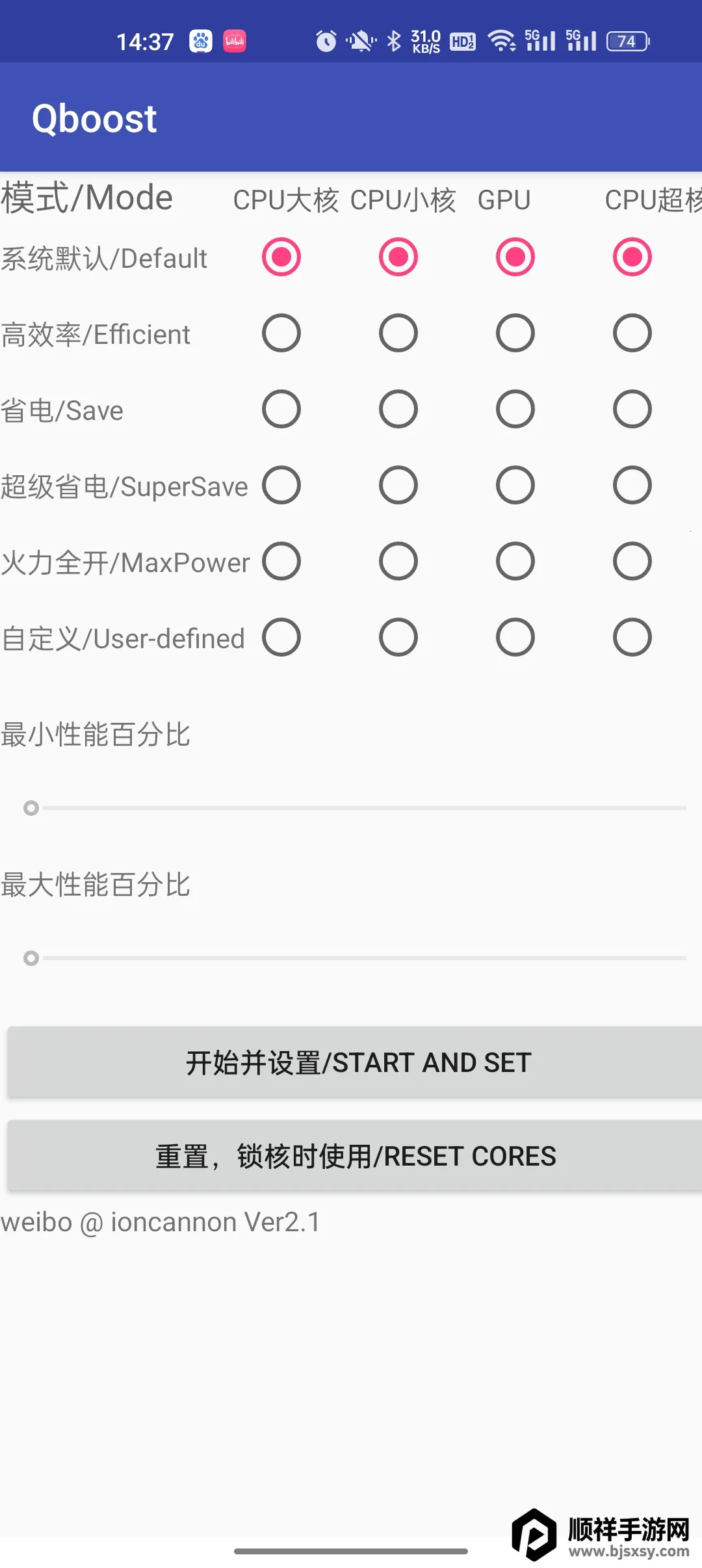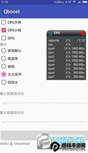 想让手机火力全开?QBoost就能帮你实现!它是一款超棒的手机性能处理软件。能全面展示手机信息,像内存使用、系统版本等,让你随时掌握运行状态。还能监测设备健康,优化内存管理,查询系统版本。界面简单直观,交互体验超棒。特色功能超实用,能根据场景和电量切换降频模式,比如省电、性能模式。支持实时监测CPU数据,掌握其运行情况。设置菜单直观,无需root权限,保障手机安全。优势明显,让手机运行流畅,电池续航持久,还能提高游戏画质。使用时,下载安装好APP,设置参数,选择想要的或自定义调节,最后启动设置就行。注意勾选gpu,选高效率模式开始。有了QBoost,手机就能时刻火力全开,畅快使用啦!