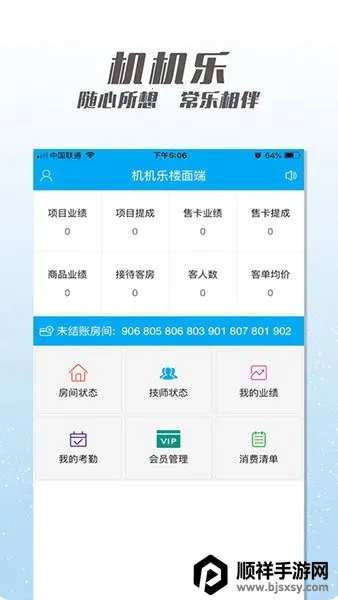 机机乐楼面端是专为足浴行业商户打造的手机办公软件,集成移动办公功能,能让管理者实时掌握业绩动态,还可自动化处理排钟、考勤等事务,具有多种优势功能,界面优化,操作便捷,助力门店数字化升级。