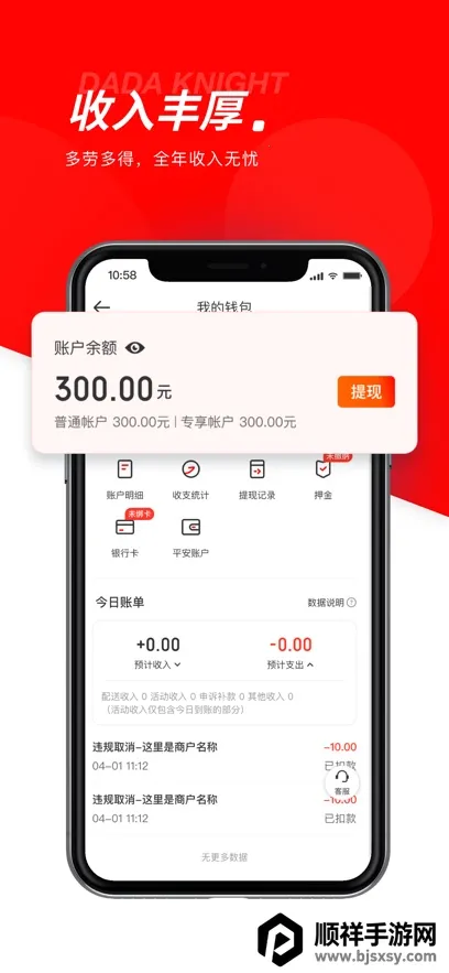2. 收入丰厚可观:按单结算,多劳多得,还有常规奖励活动。配送距离、物品重量等因素都会影响个人报酬,且有夜间补助,收入明细清晰还能自助提现。