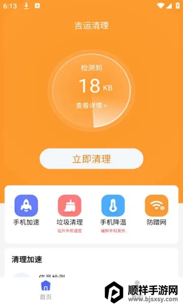 吉运清理是一款手机清理软件,功能强大。能快速清理内存垃圾,一键加速提升运行速度,保护手机安全,提供健康环境。操作简单,打开应用,点击相应按钮即可扫描并清理各类垃圾文件,释放空间,且功能免费。