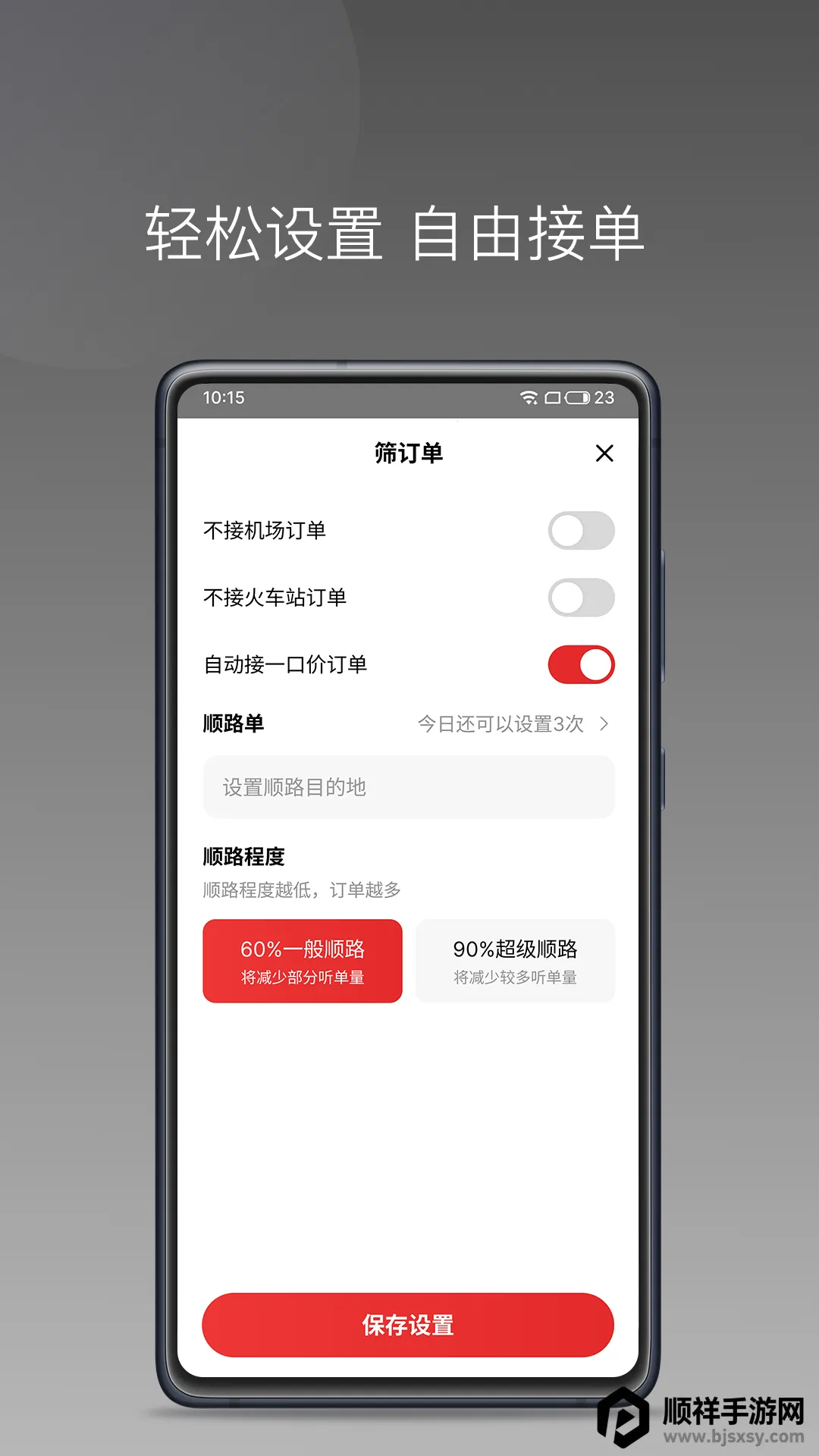 它有很多亮点功能。比如即时沟通,内置一键通话与消息功能,能让司机快速联系乘客,减少误单漏单。安全保障也很到位,全程行程录音、实时位置追踪,异常情况自动预警。多种接单模式,支持手动抢单、自动派单、预约单优先等,司机可按需切换。海量订单直连多个主流出行渠道,覆盖高频场景,就近派单响应快。还有丰厚奖励,设置多种激励,提现及时。智能导航能自动规划最优接送路径。对于想关闭一口价的司机,可在软件的设置或订单相关选项中查找具体关闭方式,以满足不同的收费需求,让司机运营更灵活。