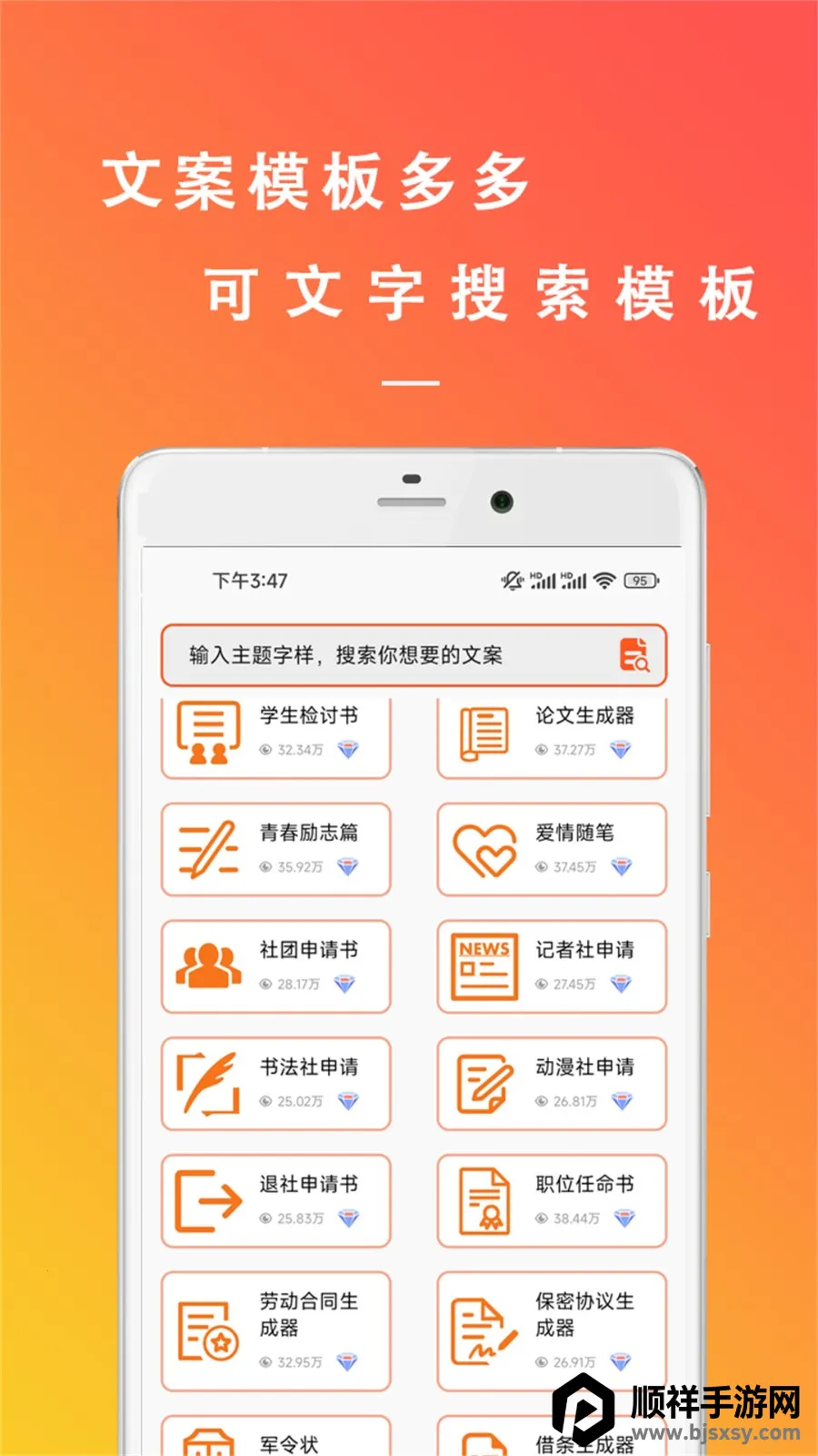 1. 模板多样:内置数百种行业专属文案模板,分类清晰,可按需挑选直接套用,快速生成所需内容。