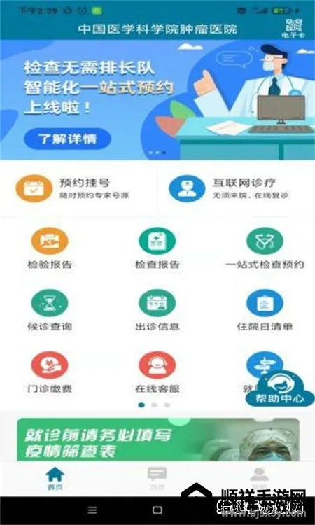医科院肿瘤医院APP由中国医学科学院肿瘤医院和安讯达盛北京科技有限公司共同推出。集成预约挂号、在线缴费等功能,提供专业指导,有癌症百科、费用清单等,方便患者就医,简化流程。