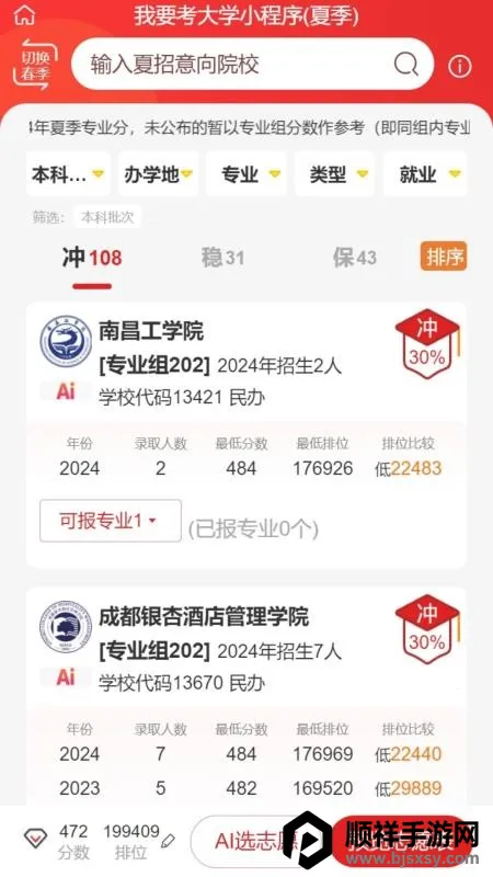 专为高考学子打造的志愿填报助手软件备受关注。它拥有庞大院校资源,覆盖本科和专科院校,能一站式满足找心仪学校需求。有详细院校介绍,包括历年录取分数线等信息,方便分析对比选校及专业。智能推荐志愿,输入分数即可获得。还提供交流群服务,方便互动沟通。诸多功能如院校对比、筛选等,助力学子实现大学梦。对于高考学子来说,是升学必备选择,值得下载体验。