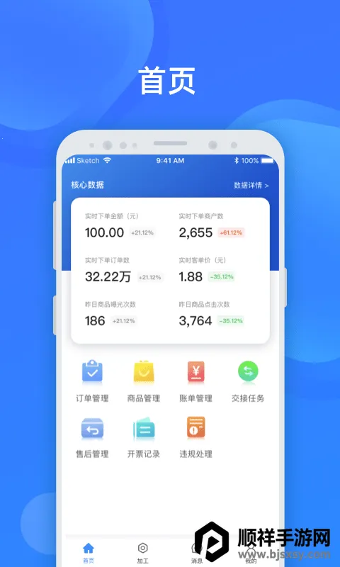 1 清晰直观的界面设计,让您随时随地查看订单信息,轻松管理店铺售卖情况。