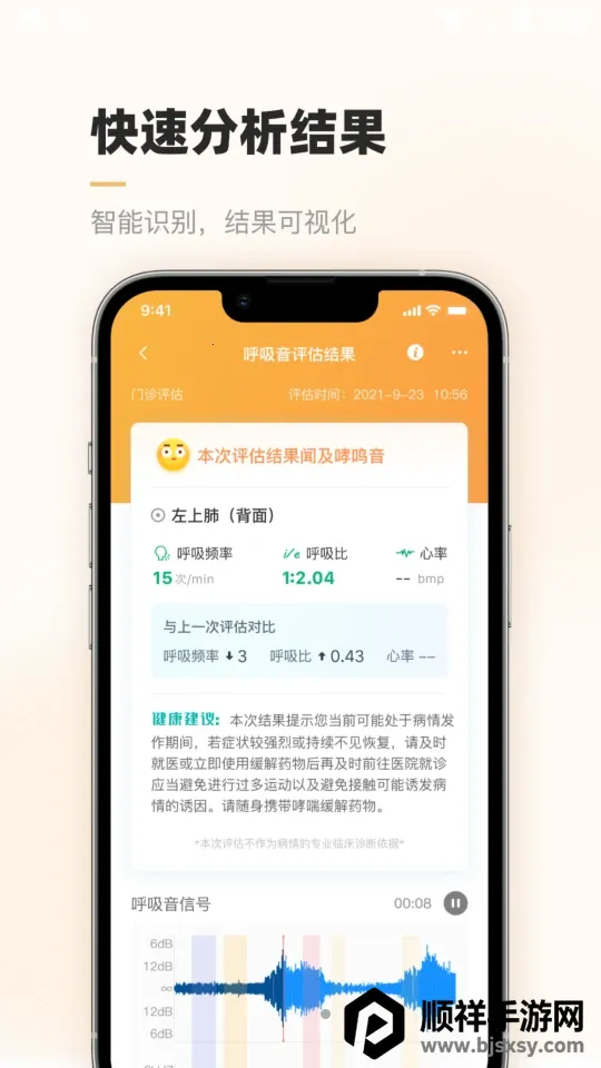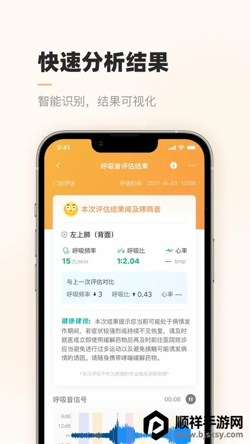 智呼吸云健康安卓版是聚焦呼吸系统慢病管理的互联网医疗 app。以互联网 AI 技术为基础,结合物联网服务。能进行呼吸音评估、结果统计等,操作方便,可实时提醒、在线问医,还有多种功能及优势助力慢病管理。