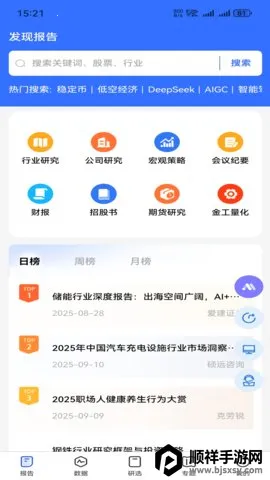 发现报告官方版能帮你轻松搞定发现报告怎么用的问题!它是一款超棒的研报服务应用软件。这里覆盖了不同行业,会推送热门文章,支持热点洞察。你能在线搜索关键字,像股票行业等,收集相关信息后生成报告,全面了解数据分析,助力决策运营。它的主要功能超实用,信息收集方面,可用内置的表格和问卷等工具记录所需信息;报告生成功能能依据收集到的信息和数据,自动生成含表格图表等的各类完整报告,直接就能用;数据分析能帮你理解数据背后的故事;文件共享功能还允许你把数据和报告分享给其他用户,高效完成工作。有了它,金融从业人员、投资者、市场运营等人员获取和整合信息都更方便啦,能为工作提供充分参考和支持。