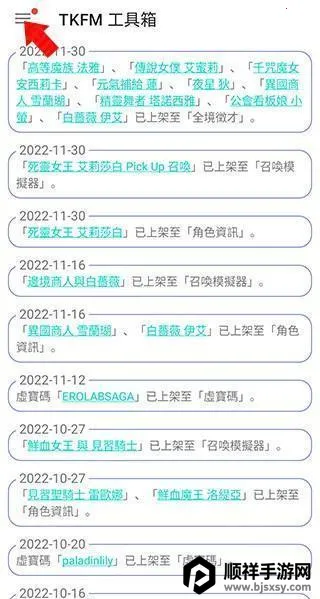 1、下载并打开TKFM工具箱,来到首页后,点击左上角三条横杠按钮