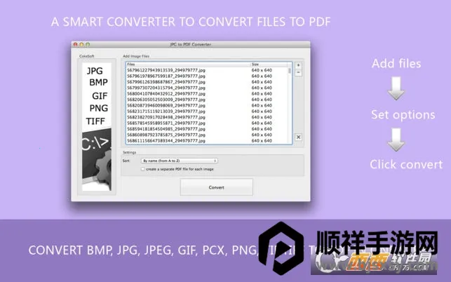 2. 支持一次性选择单张或多张JPG图片直接合成PDF,内置图片排序功能,转换前可自由调整页面顺序。