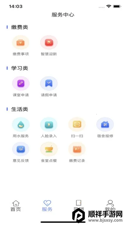 3. 服务分类详细,涵盖学习、生活、资讯等各类。不管是学习类的课程表、考试安排查看,还是生活类的报修、请假、点餐,亦或是资讯类的信息获取,都能让用户自由选择并清楚了解过程,为校园生活带来极大便利。