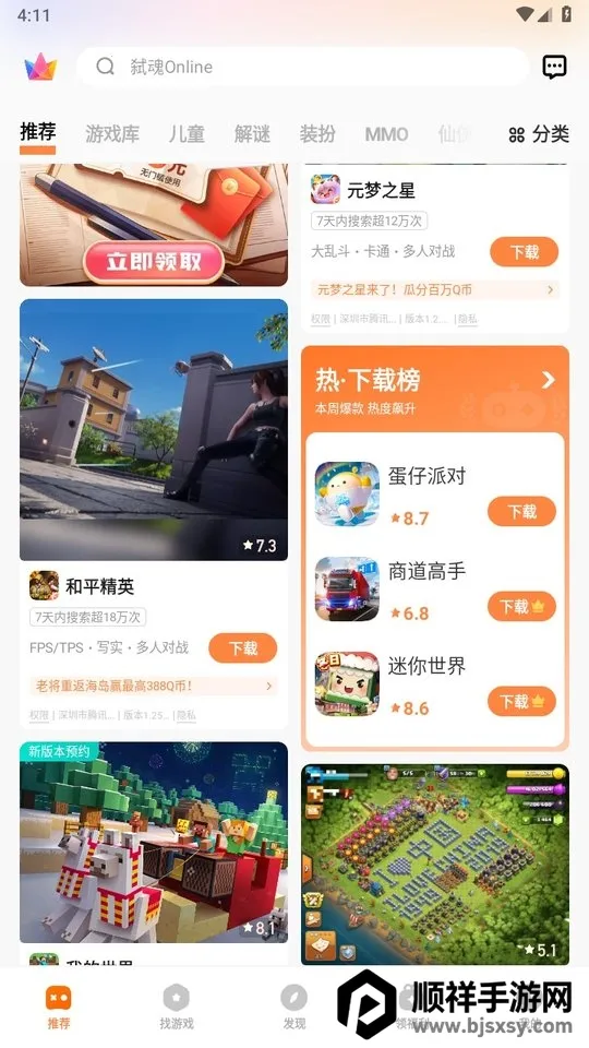 1. 海量游戏资源:汇聚市面上所有最新最热门的游戏,不管是王者荣耀、梦幻西游、阴阳师还是PUBG等各种不同的热门游戏,都能在这里直接搜索寻找到,轻松加入手机,享受舒适游戏服务。