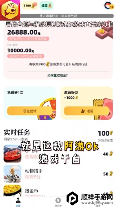 阿游OK2026官方最新版本是一款集健身与游戏赚钱功能于一体的软件。它能进行健康生活管理,提供运动计划、营养指导等,还有丰富游戏资源,可免费畅玩并通过玩游戏获取礼包奖励、红包收益。