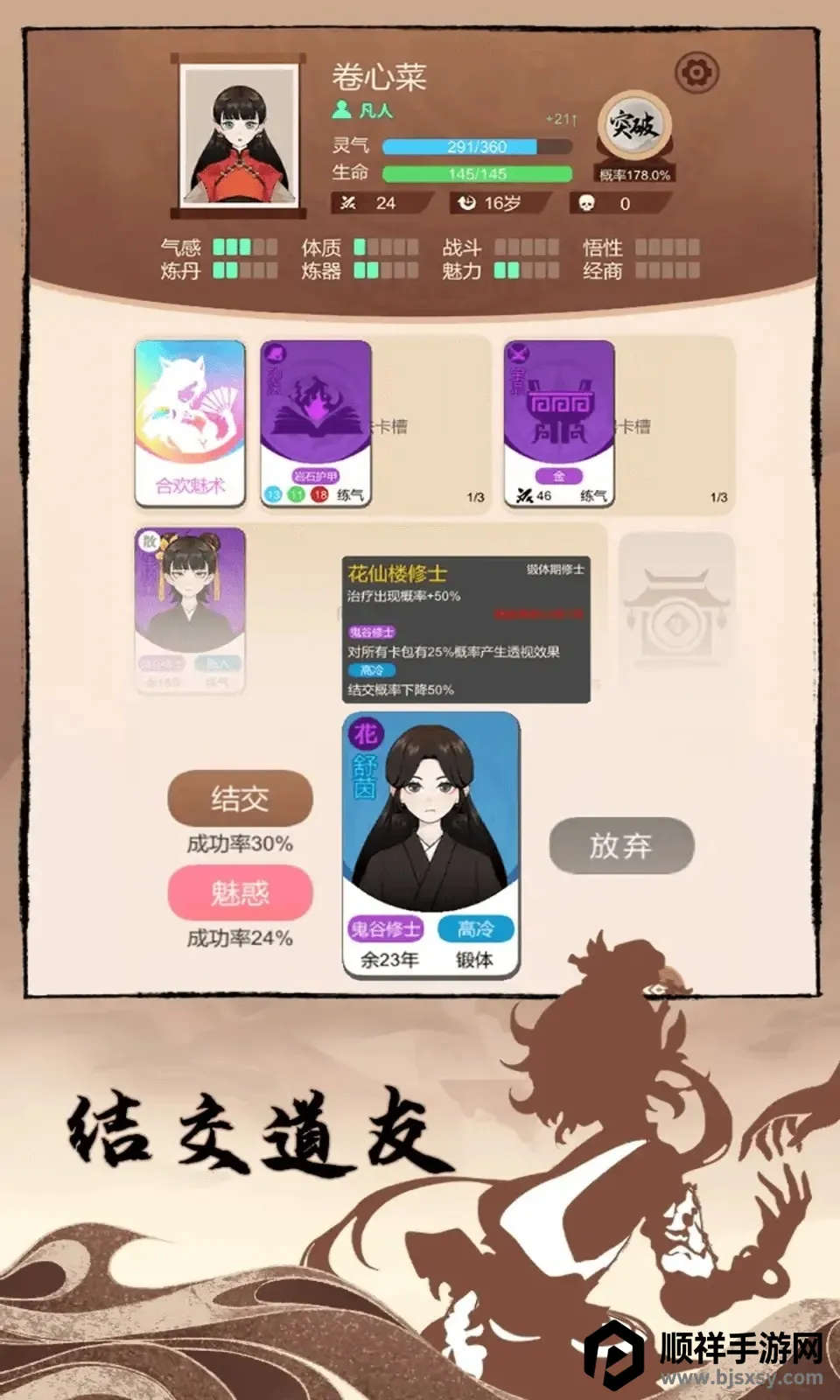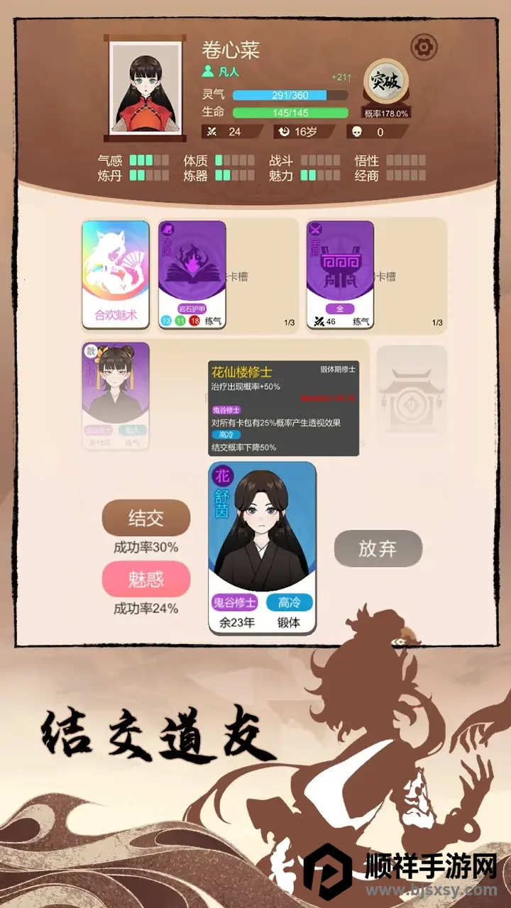 2、轻度肉鸽体验新:属于轻度肉鸽修仙模拟,玩法简单易上手,每次轮回故事不同。