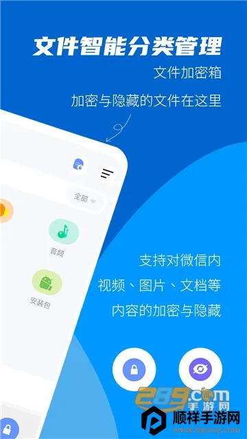 文件加密大师app是安卓版手机文件加密工具,支持微信等应用内容加密隐藏,全格式文件均可处理。能自动识别分类文件,加密箱保存文件,安全可靠,搜索方便,还具备多种加密功能及特色,保障文件安全。