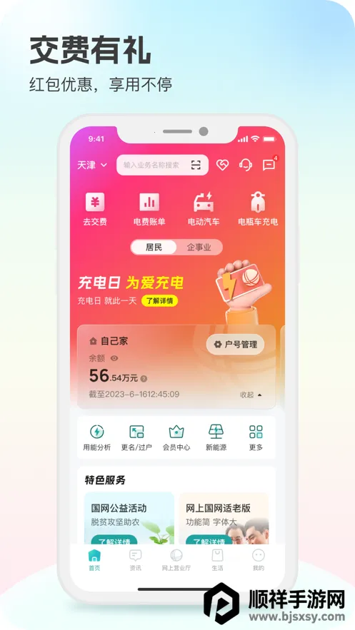 网上国网这款软件超实用!它能满足你多样化的电力需求,提高办电效率,让生活更方便。实名制保障账号安全,还能自行查看。软件里有企业电气分析、电子发票等功能,操作简单,能实时查看电气状况。想知道自家电量实用情况,不用跑电力局啦。它能实时查看附近充电桩,提供地图导航和在线充电服务。用它交电费超便捷,支持银联、支付宝等多种支付方式,还能随时查电费余额,防止停电。能查看账户、拖欠、电费等信息及账单历史记录,还有服务规范、用电常识等。能根据地区查看未来一周停电信息,方便调整安排,还能展示用电总量及明细。申请充电桩也不难,在软件里找到相关功能入口,按提示一步步操作就行,轻松搞定充电桩申请,快来试试吧!