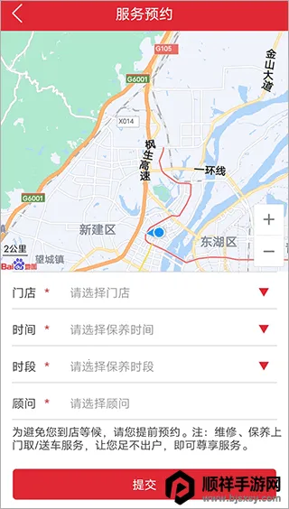3、进入预约页面后,选择门店、时间、时段、以及顾问后,点击提交即可。