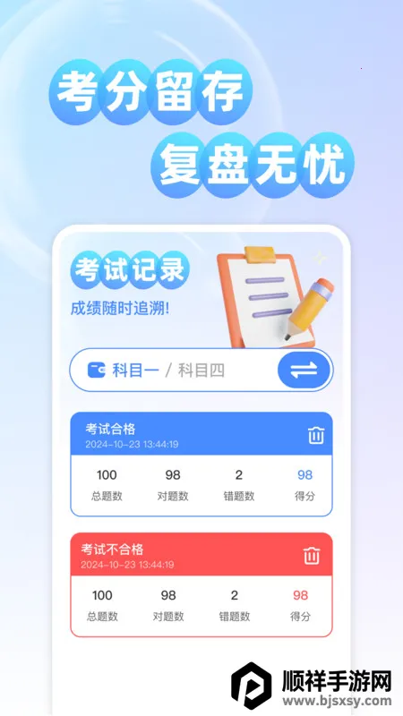 4、全面助力备考。留存每次考试分数方便复盘,海量题目供你不断刷题,还有仿真演练让你熟悉题型,轻松备考驾证考试。