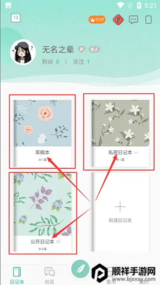 2、在首页选择你要删除的日记所在的日记本