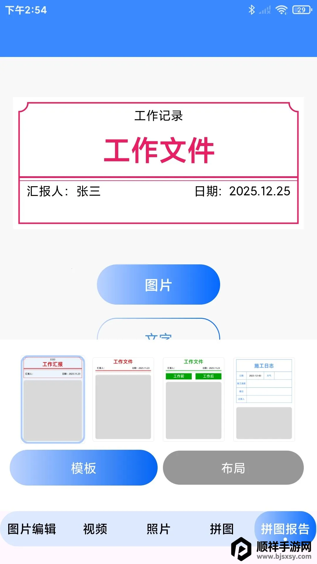 4、在拼图报告中可以选择模板,添加图片和文字进行编辑制作。
