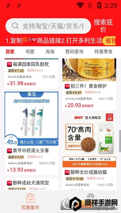 优惠查询超便捷:在软件内搜索,能轻松查询到商品隐藏的更高面额优惠,让购物更实惠。