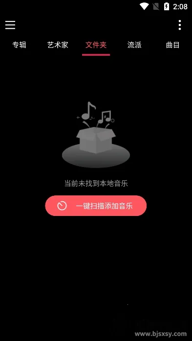 1、进入我们的音乐软件后首先需要点击一键扫描添加音乐