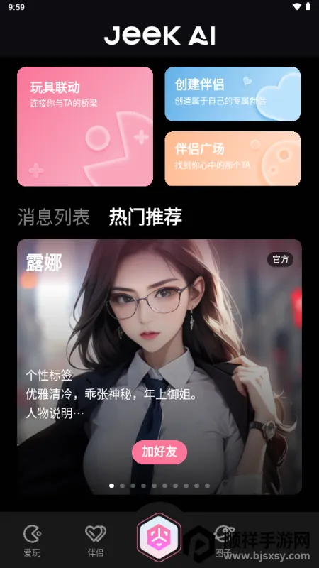 JeekAI极爱是一款独特的AI聊天软件。它将玩具与AI伴侣功能相结合,能带来沉浸式互动体验。用户能和AI伴侣闲聊、吐槽、撒娇,分享悄悄话,每次对话都趣味十足。软件支持多角色剧情,让独处不孤单。其玩具还能同步语气节奏震颤,增强真实感。注册登录方便,连接玩具简单,AI聊天轻松,创建角色也容易上手。无论是想享受有趣的聊天,还是体验独特的互动,它都能满足,给用户带来别样感受,是一款值得尝试的软件。