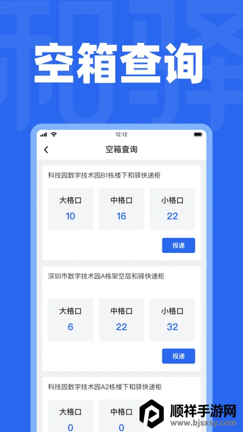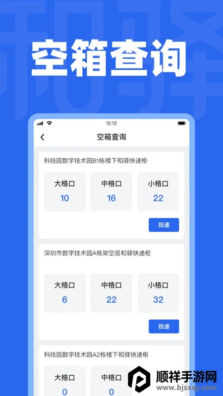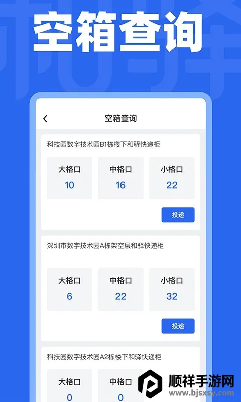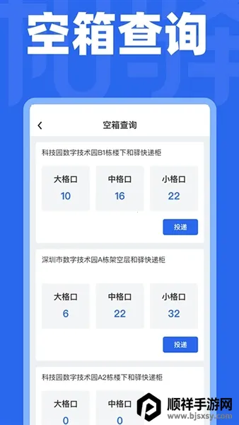 信息查询便捷:支持运单号和手机号两种包裹查询方式,还能模糊搜索和查看历史记录。同时可实时显示周边快递柜格口使用情况,按区域、快递柜编号等多种方式查询空箱,方便快递员随时掌握包裹状态,快速找到可用格口。