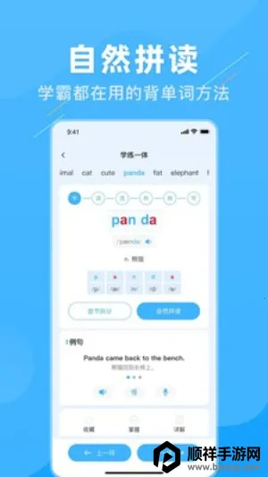 2、自然拼读助力:支持对单词进行自然拼读拆分,方便依据音节开展拼读练习,降低拼读难度。