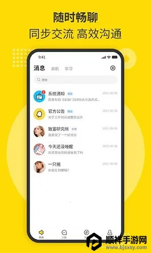 在这里能自由编辑个人名片,让更多人认识自己,从而结交更多朋友。软件设置了诸多精品课程内容,可供用户线上学习,在聊天中发现新的人脉和商机。