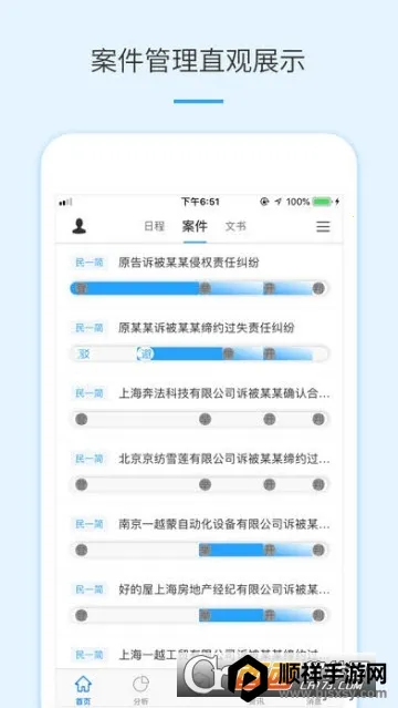 2. 完善案件管理:平台助力律师管理案件信息,掌握不同案件详情,实现案件管理可视化,结合甘特图使诉讼流程一目了然,方便操作。