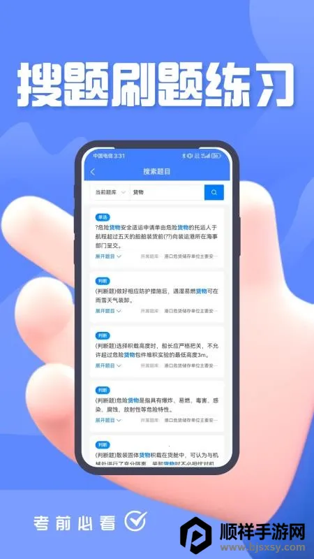 危险货物水路运输从业人员题峰app提供一站式刷题备考服务,有海量优质题库,涵盖各种考点。具备多种功能,如模拟试卷、搜索题目等,能助用户高效备考、精准提分,还及时更新题库,答案解析详尽。