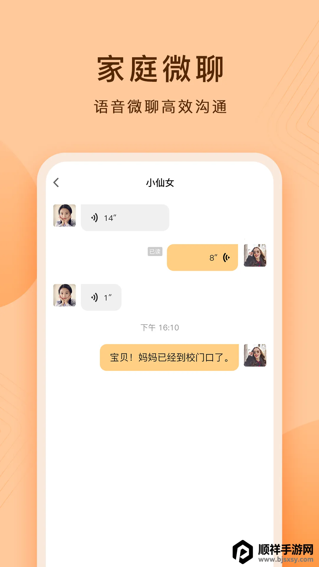 2. 便捷沟通超轻松:微聊功能强大,文字、语音、图片、视频一应俱全,家长与孩子沟通更丰富愉快,拉近亲子距离。