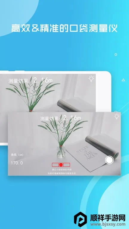 1. 操作便捷:只需将手机对准目标物底部或顶部,就能自动完成测算,操作简单轻松。
