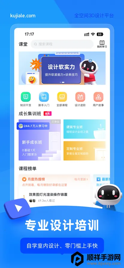 酷家乐设计师手机版绘图超方便!它专为室内设计师打造,集成海量真实装修案例、200万高精度家具模型,还有系统化视频课程及行业级渲染引擎。有了它,随时随地能完成户型解析、方案设计、效果呈现与客户沟通全流程。