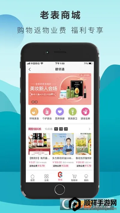 4. 购物实惠:与多个电商平台嫁接互通,为社区业主提供掌上购物服务,购物时还能享受物业费返现福利,让生活更实惠。