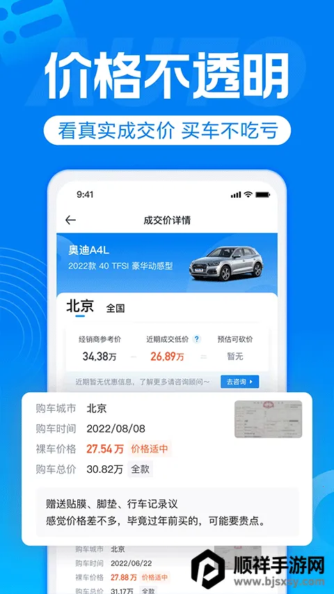 想知道哪个汽车报价软件准确真实?那这款汽车报价软件你可得了解下!它有汽车之家 13 年积累的 3 万车型图片报价参数大全,数据超丰富。覆盖全国 2.5 万家 4S 店及促销活动信息,能让你轻松掌握本地行情。提供百万真实车主成交价,且 3 个月内数据更新,按城市区分价格,帮你精准了解价格情况。支持按品牌、价格、级别、配置等 20 余项条件筛选车型,直观展示参数差异、用户口碑评分及印象标签,辅助你决策。还能 360 度全景看车、视频评测,可视化细节呈现。从选车到购车全流程覆盖,有真人销售 1 对 1 解答疑问。有了它,买车不花冤枉钱,轻松又靠谱,赶紧试试吧!