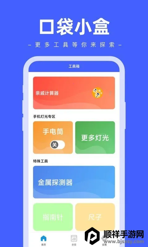 口袋小盒2026官方最新版本是一款多功能手机工具箱软件,涵盖手电筒、计算器等众多实用工具,无广告且免费。资源多更新快,工具覆盖广、操作简单,能满足生活日常需求,让手机使用更便捷。