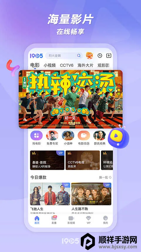1905中国电影网app是电影频道节目中心CCTV6官方新媒体移动客户端。它依托CCTV6电影频道,能为咱提供超丰富的高清影片、资讯视频等内容。现在看正片电影免费,电影频道、颁奖晚会、电影资讯等想看就看。在这软件里,能看电视剧、电影、海外佳片,搜索影片超迅速,还能自由调节手机亮度、音量,带来不一样的视觉冲击。能任意选视频播放倍速,提高观看进度,快速看完完整影视。它支持离线下载和TV投屏功能,还有大型融媒体系列直播。软件功能多样,像欢喜首映有全网热播好戏大片,精彩剧集涵盖各类题材,精彩直播能抢先看首映礼等,CCTV6可同步直播回看电影频道节目。会员还有观影团、影票、影迷大礼包等6大特权。总之,1905中国电影网app免费又好用,能满足你各种看电影需求。