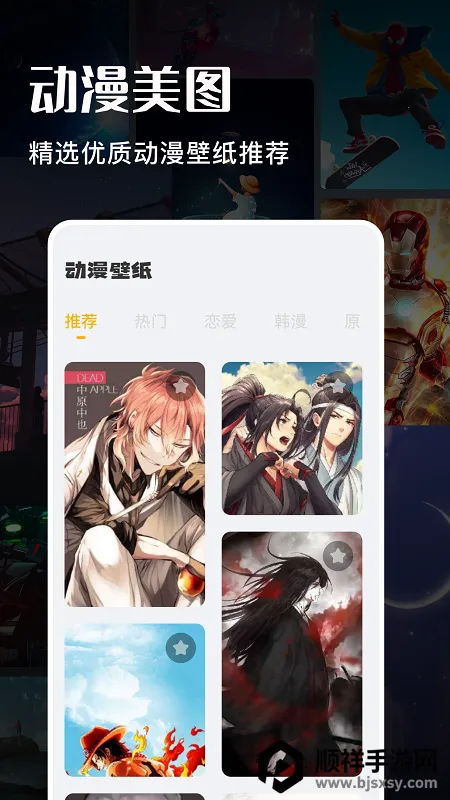 游戏动漫壁纸app是实用手机壁纸软件,汇集海量高清壁纸,涵盖游戏动漫、风景动物等丰富类型,免费使用、每日更新。有最新推荐、专题图集等功能,操作简单,支持分享,能让手机屏幕更精彩。