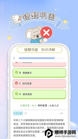 2. 高效学习辅助:学习过程设计成关卡,结合音频讲解与速记,助您高效记住知识点。系统自动记录错题并推荐相似题型,有针对性巩固练习,提升学习效果。