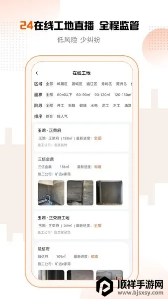 2. 完成网上合作订单后,可直接观看施工全程监理,随时掌握施工动态。